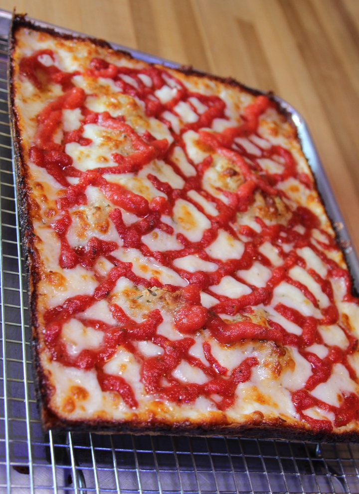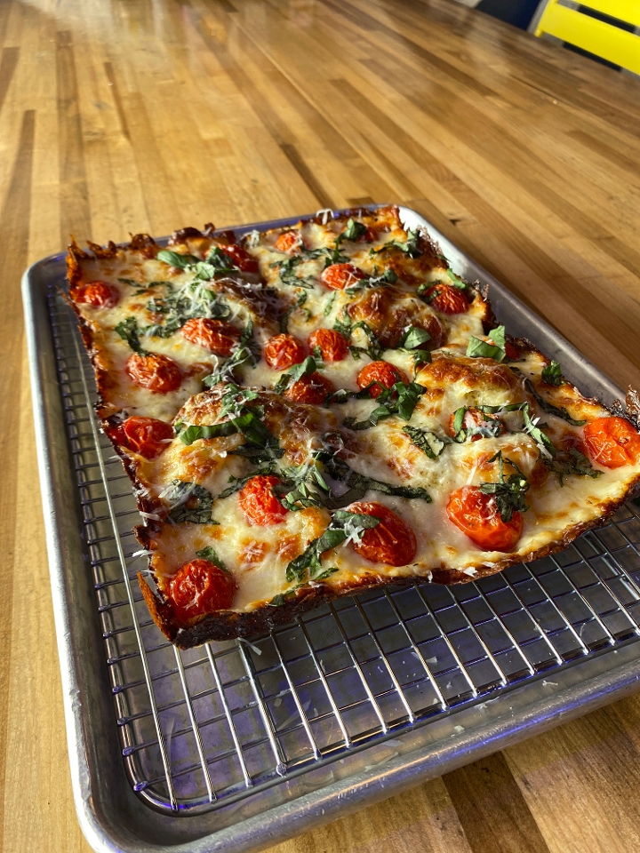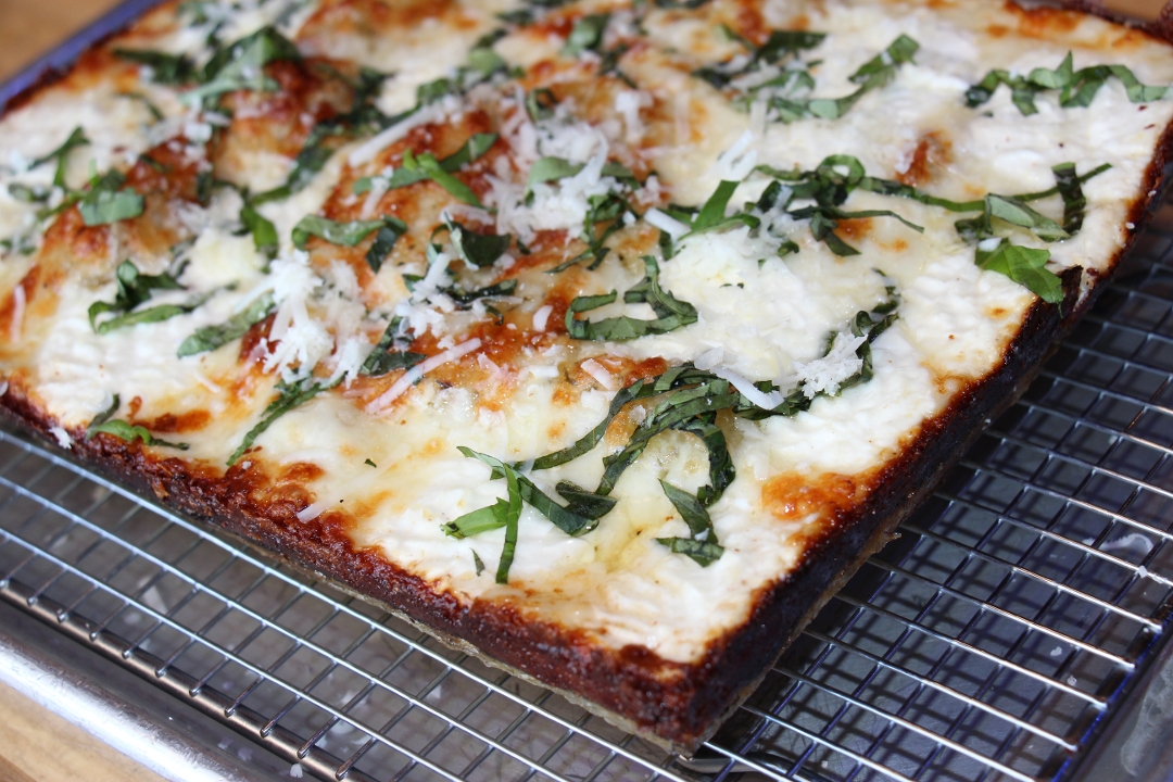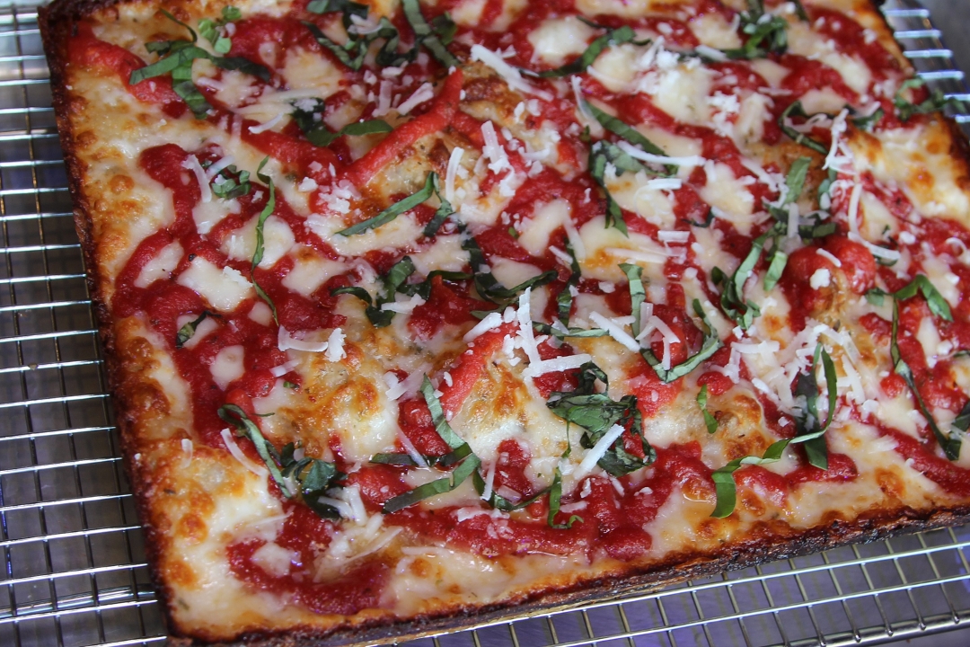 DETROIT RED SAUCE - BRICK CHEESE BLEND - FRESH BASIL - PECORINO ROMANO