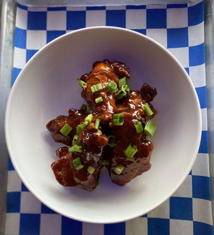 GOLDEN BBQ SAUCE - BRICK CHEESE BLEND - ROASTED GARLIC - RED ONION - SMOKED BACON - DICED CHICKEN TENDERS - GREEN ONION - PECORINO ROMANO